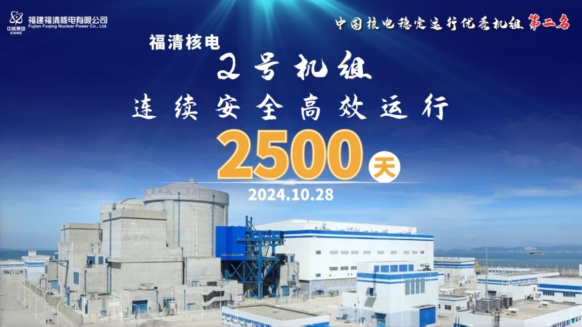 福清核電2號機組連續安全高效運行2500天