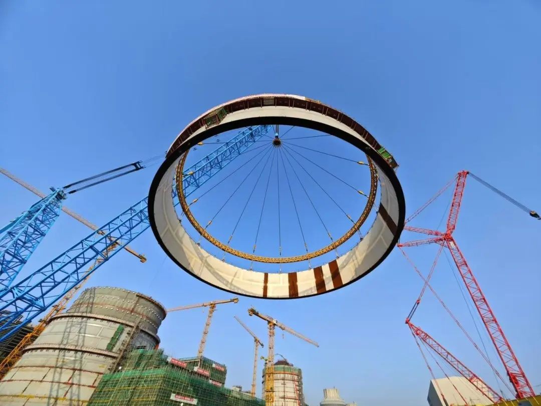 三門核電3號機組屏蔽廠房鋼穹頂吊裝就位