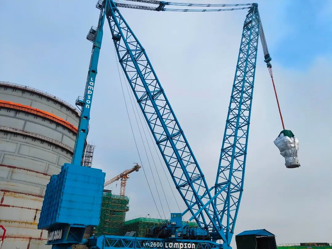 6月4日7時50分,在三門核電二期建設現場,中核機械工程的2600噸吊車巨臂舒展,將4號機組一體化堆頂組件(IHP)穩穩吊裝就位至核島內部的指定存放架。此次吊裝的圓滿完成,為4號機組核島工程主線進度按期實現創造了關鍵條件。重器精裝穩落位IHP是核島反應堆最重要的設備之一,采用了模塊化設計理念,由多個獨立設備組成:集成了控制棒驅動機構、棒位探測器、堆頂通風冷卻設備等六大系統。該設備呈圓柱形,吊裝總重超過320噸,鑒于設備需垂直就位且就位空...
