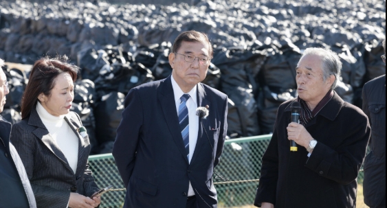 日本首相石破茂14日造訪東日本大地震災區福島縣,在雙葉町視察了因東京電力公司福島第一核電站事故去污作業而產生的土壤的臨時存放點。