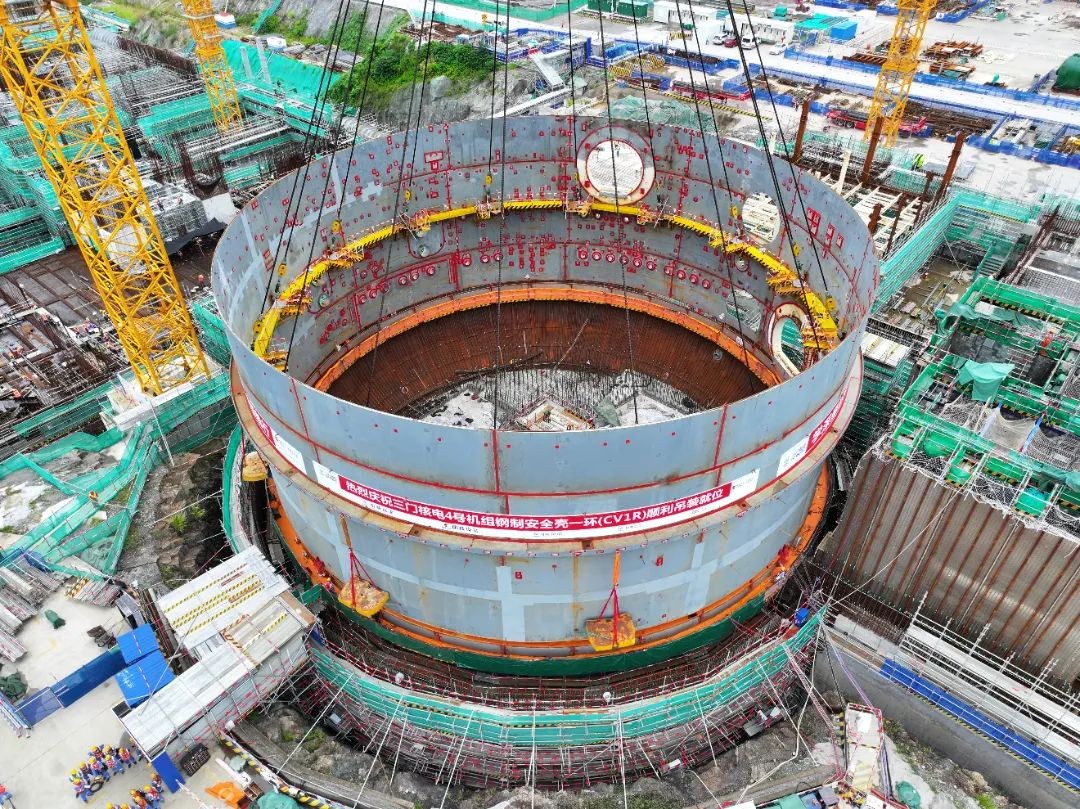 8月29日,三門(mén)核電4號(hào)機(jī)組鋼制安全殼一環(huán)順利吊裝就位。這是繼4號(hào)機(jī)組安全殼底封頭吊裝就位后的又一里程碑節(jié)點(diǎn),為4號(hào)機(jī)組核島反應(yīng)堆廠房后續(xù)施工創(chuàng)造了有利的條件。