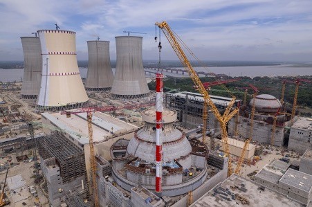 孟加拉國正在建設(shè)的盧普爾核電站1號機(jī)組反應(yīng)堆廠房已安裝通風(fēng)管道。該管道重 100 噸,長 67 米。安裝過程使用一臺強(qiáng)大的起重機(jī),歷時八個小時。首先將其移動到垂直位置并升高幾米以檢查吊索和起重機(jī)的穩(wěn)定性。然后才被運送到安裝區(qū)域。