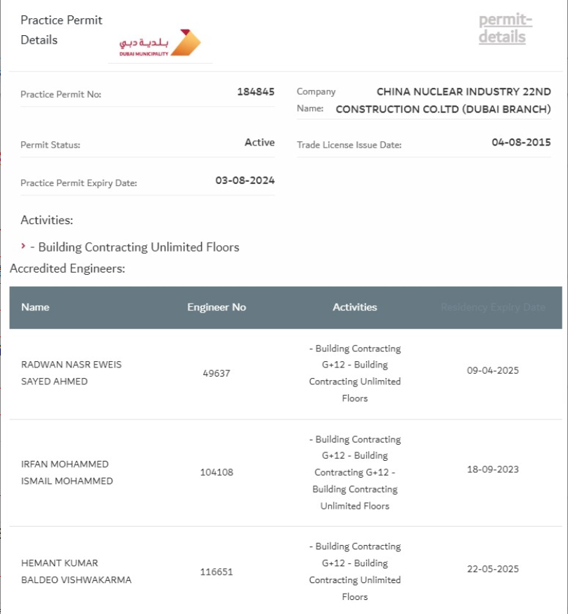 中核二二取得迪拜最高等級建筑資質(zhì)