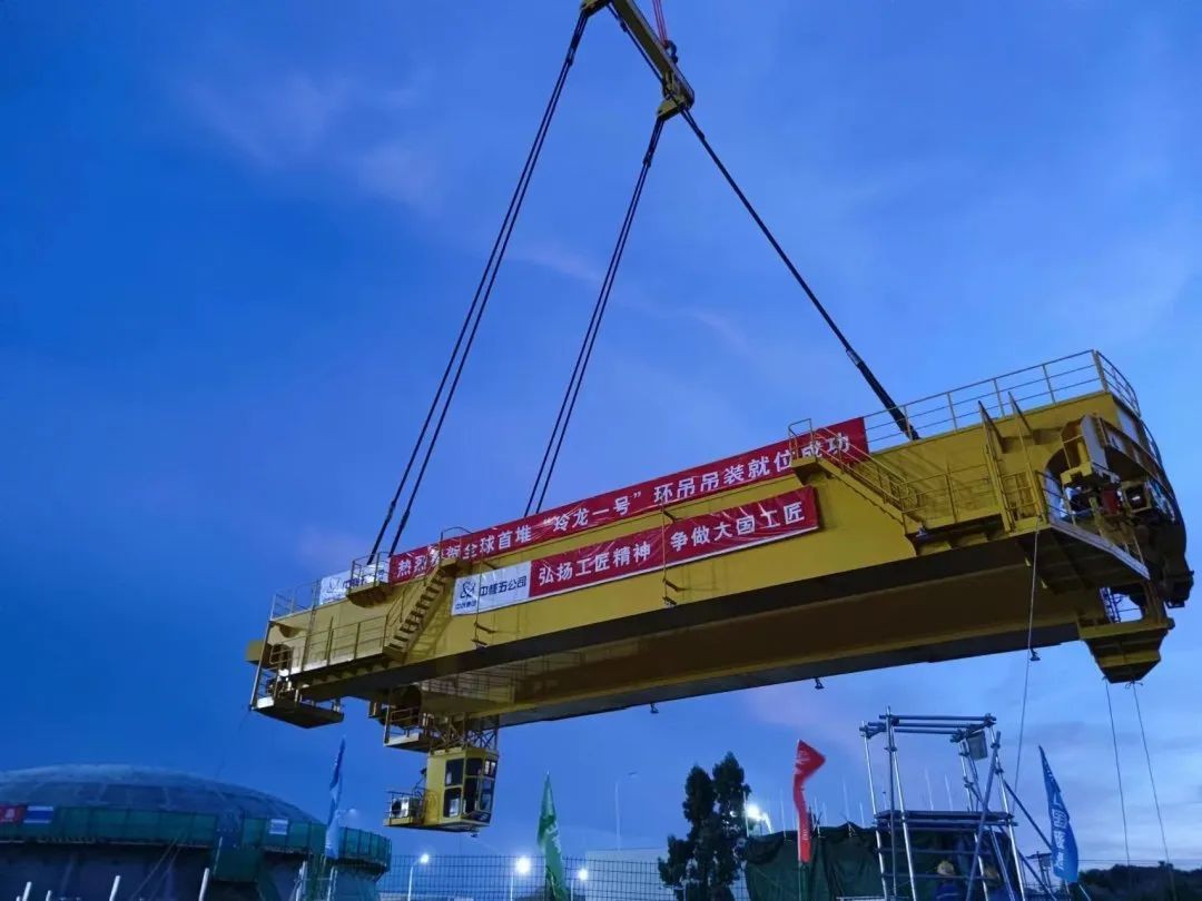 玲龍一號全球首堆環(huán)吊主梁吊裝就位