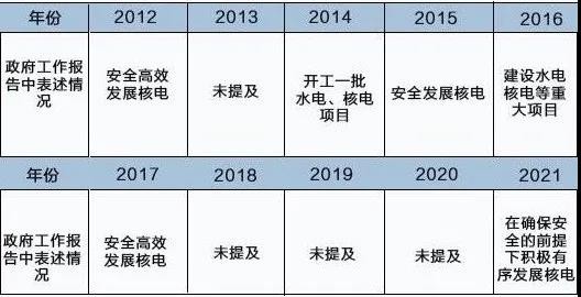 3月5日的十三屆人大四次會議上,國務院總理李克強所做的《政府工作報告》中關于2021年重點工作里提出:在確保安全的前提下積極有序發展核電。這是十年來政府工作報告中首次用“積極”的字眼來形容核電發展工作安排。
